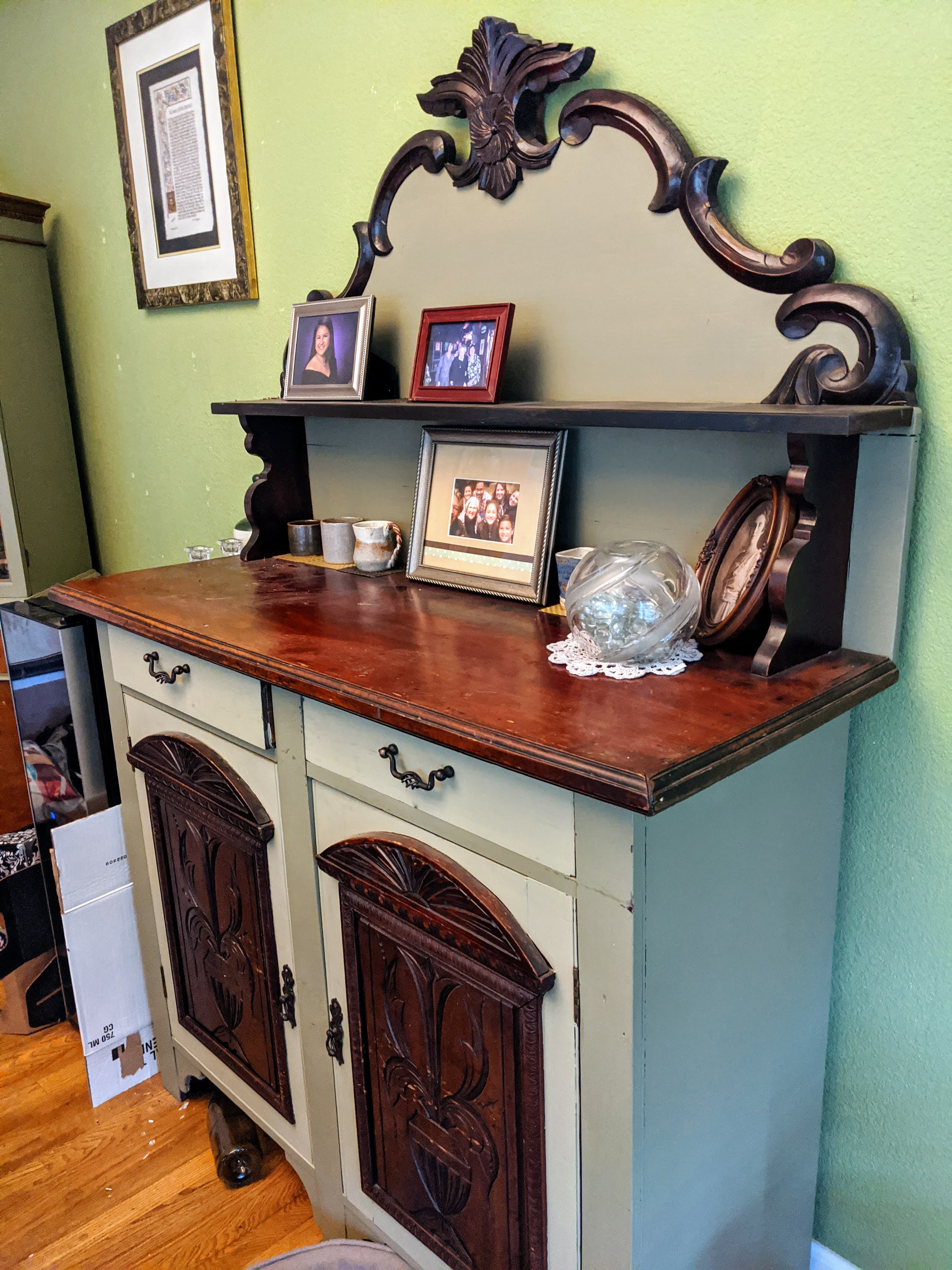 That was handmade in the 1930’s and restored by a local artist. The door panels were hand-carved. And even after all these years, according to the artist who restored it, it was crafted so well that even after all these years, it was so structurally sound that all she had to do was clean and refinish it.