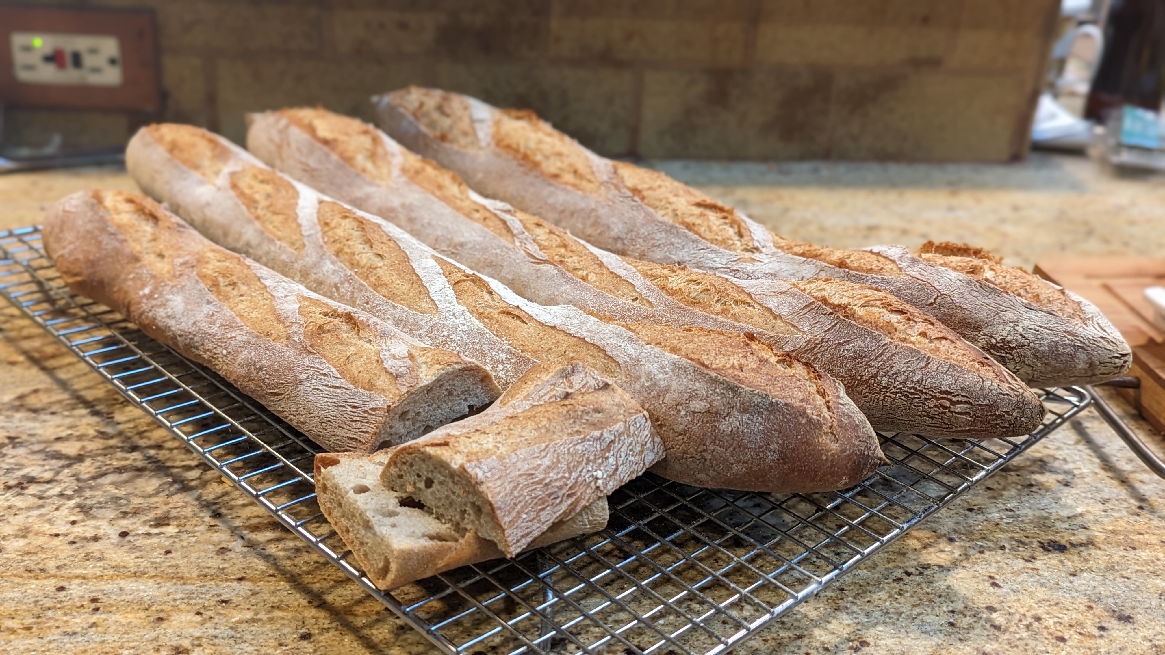 …than pulling baguettes out of the oven, picking one up, and immediately noticing that it weighs far less than how it looks. That goes for any bread, but for baguettes, it’s a crucial quality because it’s an indicator that the loaves had great oven spring which, in turn, means that the crumb will be light and airy.