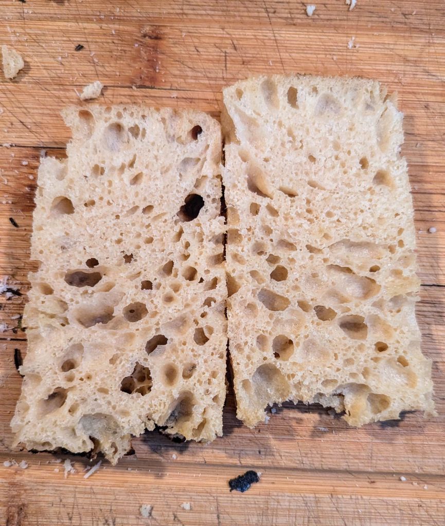 In doing my research on focaccia, like other Italian breads, there are various kinds depending on the region. This recipe is a sourdough riff on Ligurian focaccia which tends to be a thicker, puffier kind as compared to a Genovese focaccia which is thin like flatbread. Also, even though I list honey as part of the formula, I didn’t include it in my final dough because I baked it in my wood-fired pizza oven. And even though it is baked in a pan, I didn’t want to risk the sugar burning. However, if you’re baking in a regular oven, by all means, include the honey! Either way, it’s still delicious.