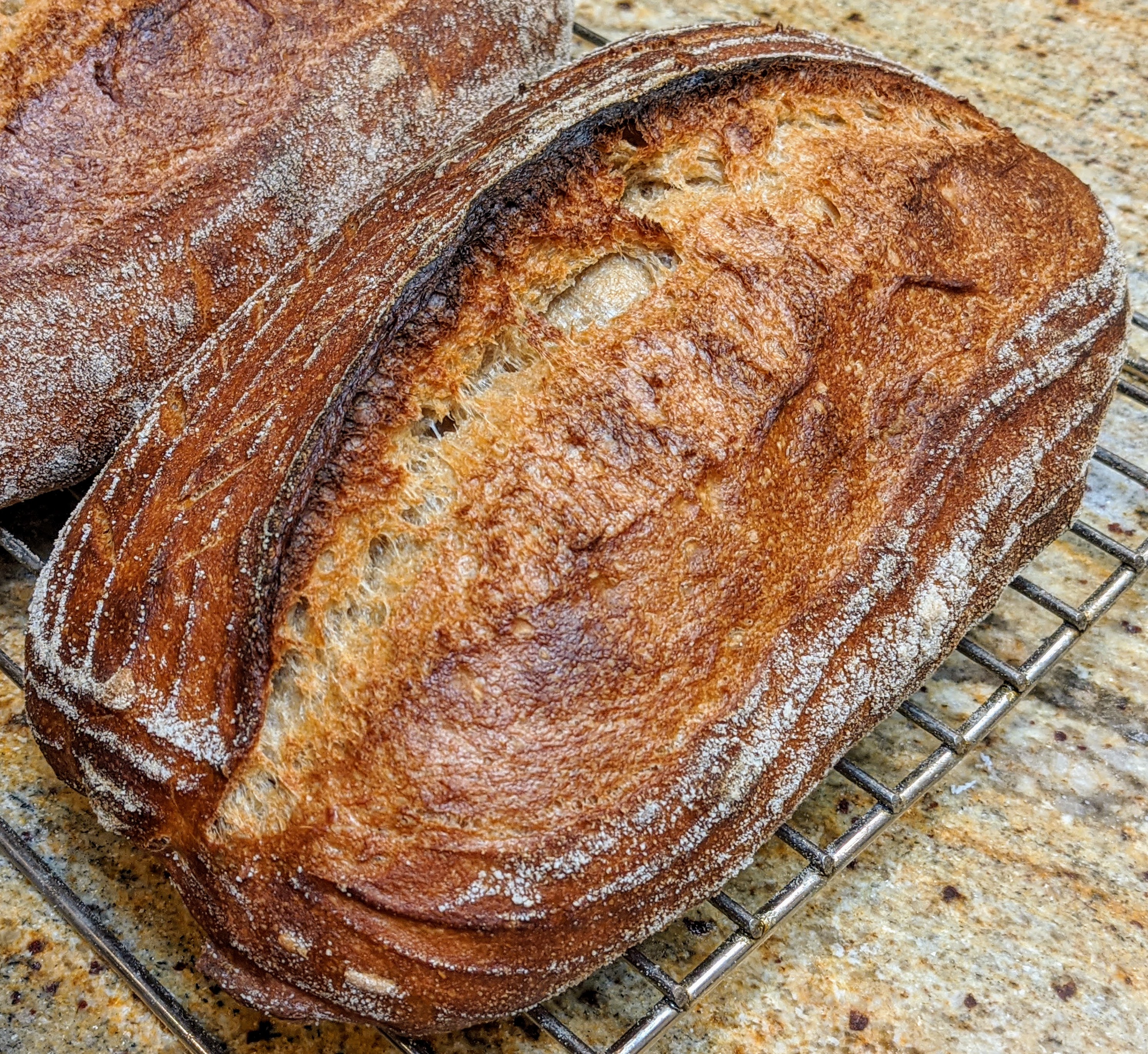One might argue that a bread like this will not be as complex in taste as a traditional sourdough bread. But I disagree. Just as with cooking, complexity can come from several sources. I’ve joined the school of thought that doesn’t depend solely on the microbes to provide the flavor complexity. The combination of the flours I use plays an immense role in influencing the flavor and texture of the bread.