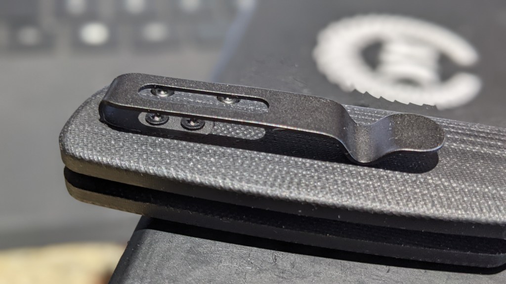 The blade is perfectly centered. The detente is perfect to me, holding the blade in place in my pocket, but still allowing easy deployment using either my thumb or a reverse flick. The contoured G10 scales have a great feel to them, and while the clip is a little on the tight side, it’s mounted for a nice, deep carry.