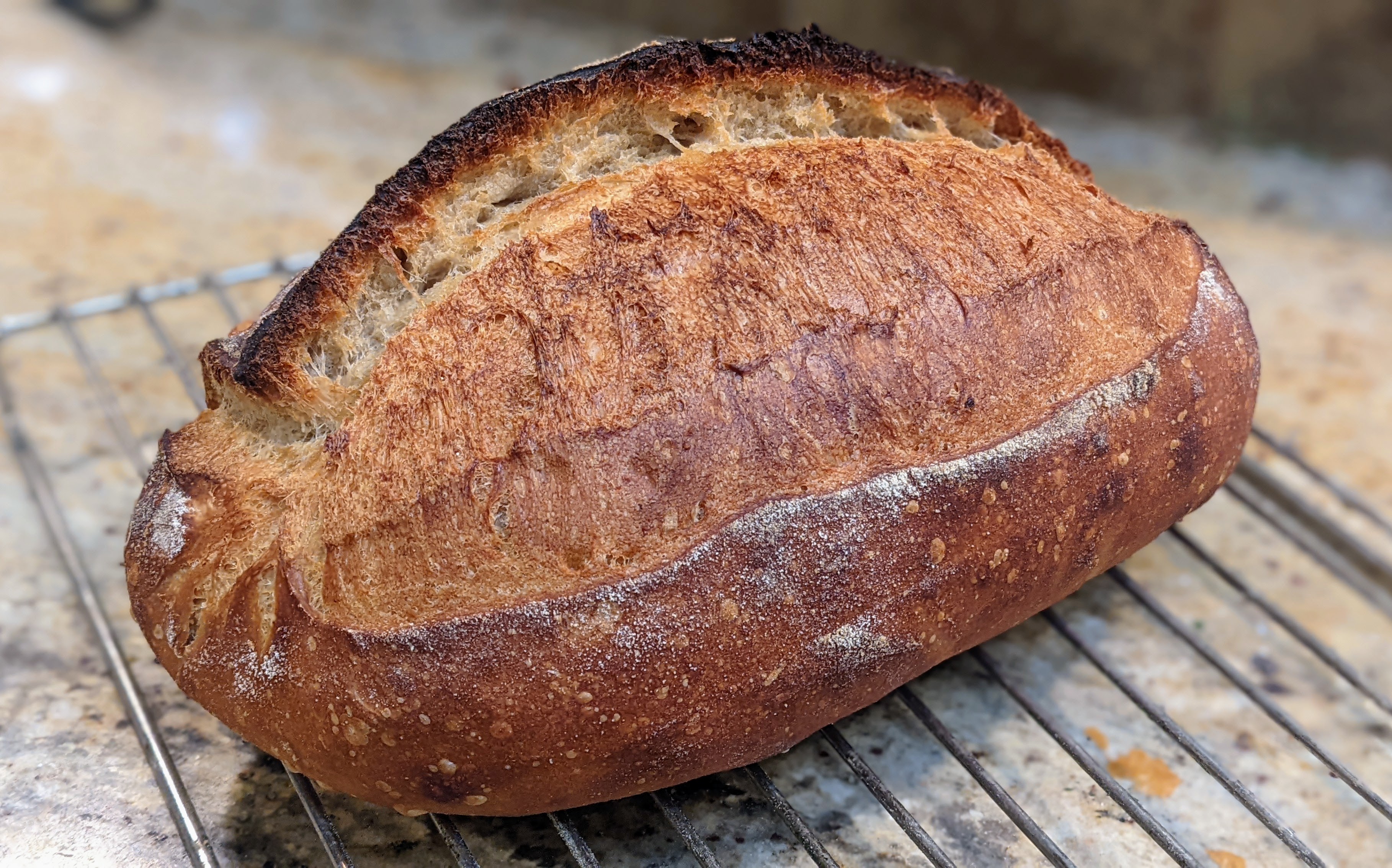 And that delicateness was a challenge to work with at first as it introduced a trade-off with the soft crumb: The dough also became prone to tearing. It forced me to learn how to handle the dough more gently. Until then, I hadn’t realized how ham-handed I was with my dough. My stretch and fold sessions were relatively rough affairs compared to how I stretch and fold now; not that I’d completely rip the dough apart, but it certainly wasn’t with the deliberate care I take now. And that skill has carried over to other dough made with different flour blends.