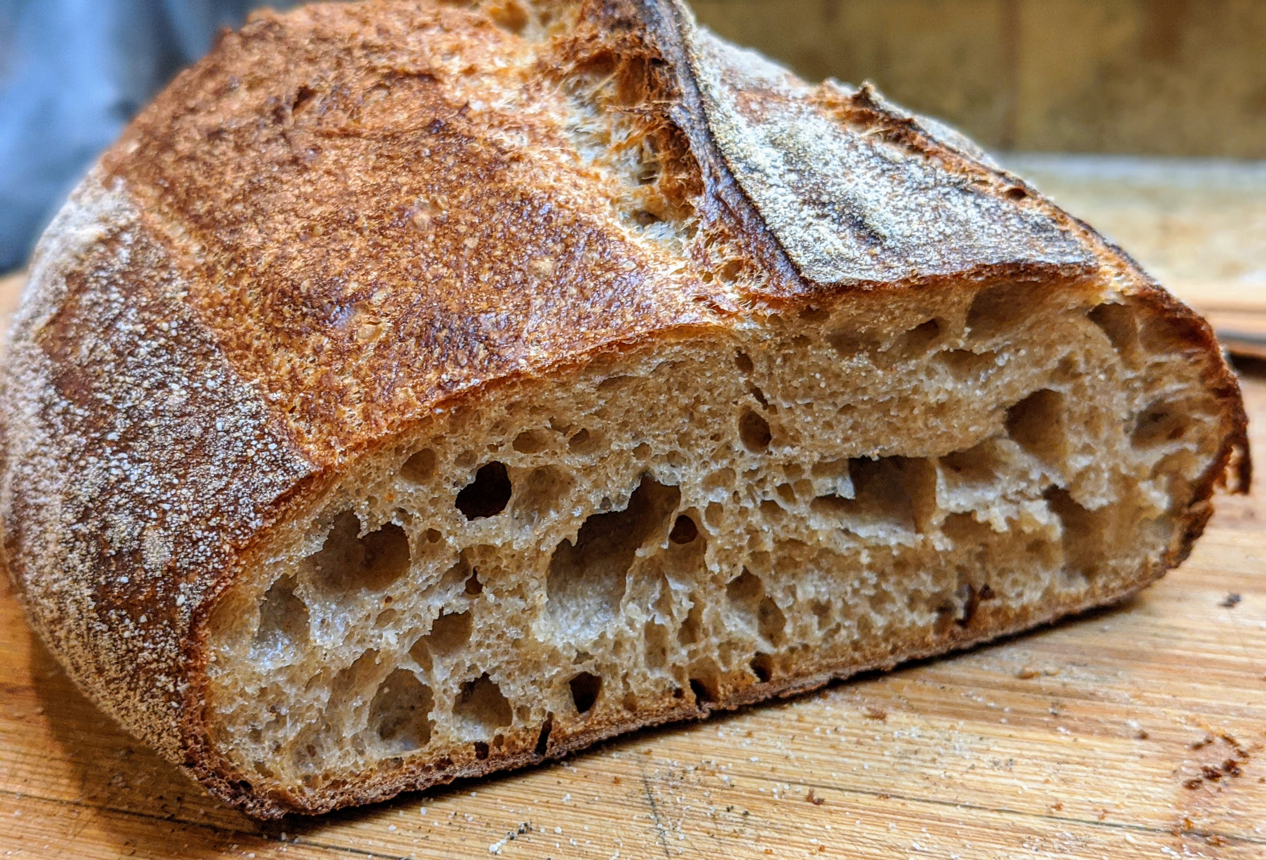 And that delicateness was a challenge to work with at first as it introduced a trade-off with the soft crumb: The dough also became prone to tearing. It forced me to learn how to handle the dough more gently. Until then, I hadn’t realized how ham-handed I was with my dough. My stretch and fold sessions were relatively rough affairs compared to how I stretch and fold now; not that I’d completely rip the dough apart, but it certainly wasn’t with the deliberate care I take now. And that skill has carried over to other dough made with different flour blends.