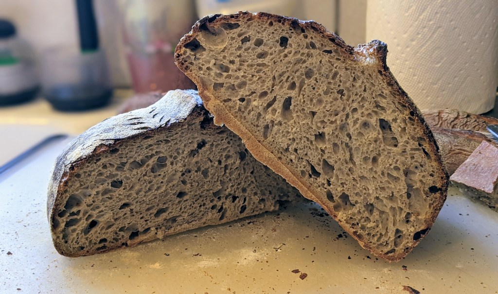 Using a sourdough starter alters my normal process for Baguette de Tradition because I follow the Tartine Basic Country Loaf process which includes a fermentolyse and a bassinage when I add the salt. Here’s the process: