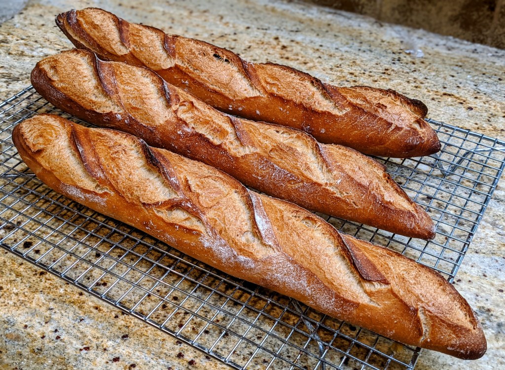 But in both cases, I use the same shaping technique that I learned from Chef Farbinger. Now, no matter what dough development technique I use, my baguettes come out looking the same. It’s comforting because as simple as the ingredients are in baguettes, they’re probably the most challenging bread to get right. And shaping is absolutely critical, which is why I use the same technique for both dough production methods. Besides, if it’s good for a master chef, it’s certainly good for me. 🙂