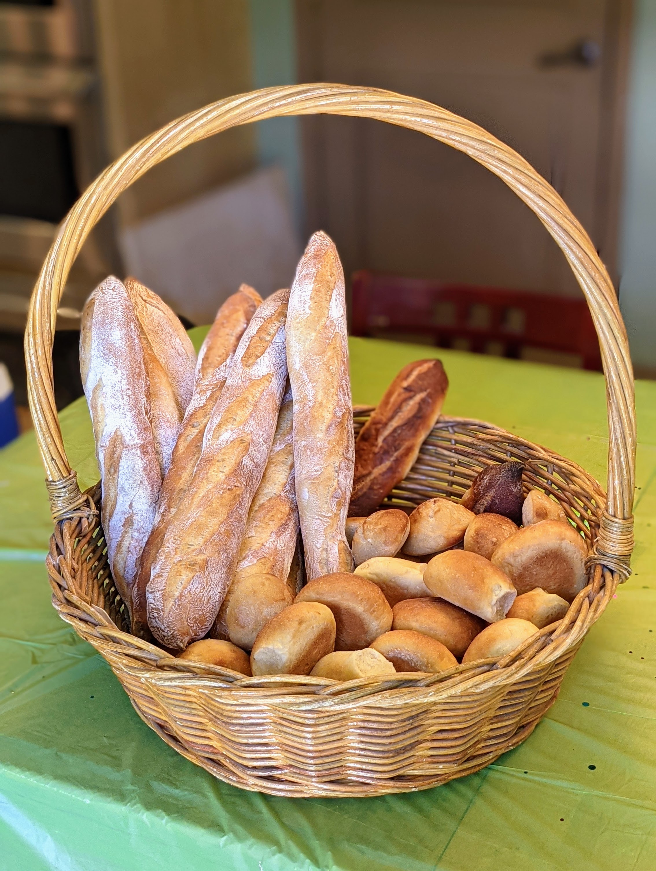 On the left are the baguettes made using the pain à l’ancienne technique and to the right are a recent batch of Baguettes de Tradition. They were both baked in pretty much the same way, at the same temperatures. But notice how the pain à l’ancienne style baguettes are darker. This is because of the carmelization of the sugars that were released into the dough overnight. Baguettes de Tradition, on the other hand, are processed all within a few hours time; not enough time for sugars to be released.