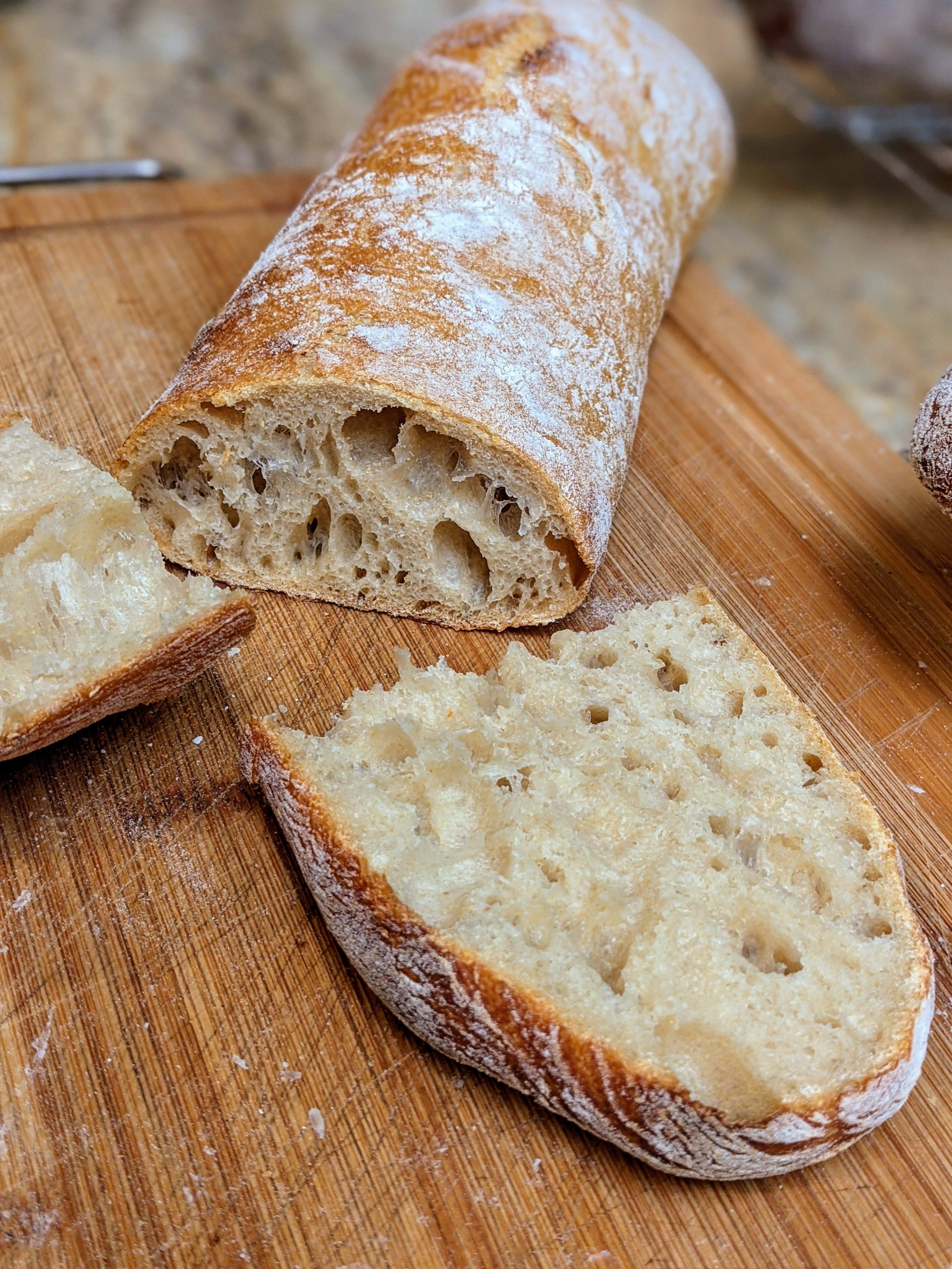 Because semolina is whole-grain flour, don’t expect large holes to form. But that’s okay. Your loaves will spring and have a wonderfully soft crumb!