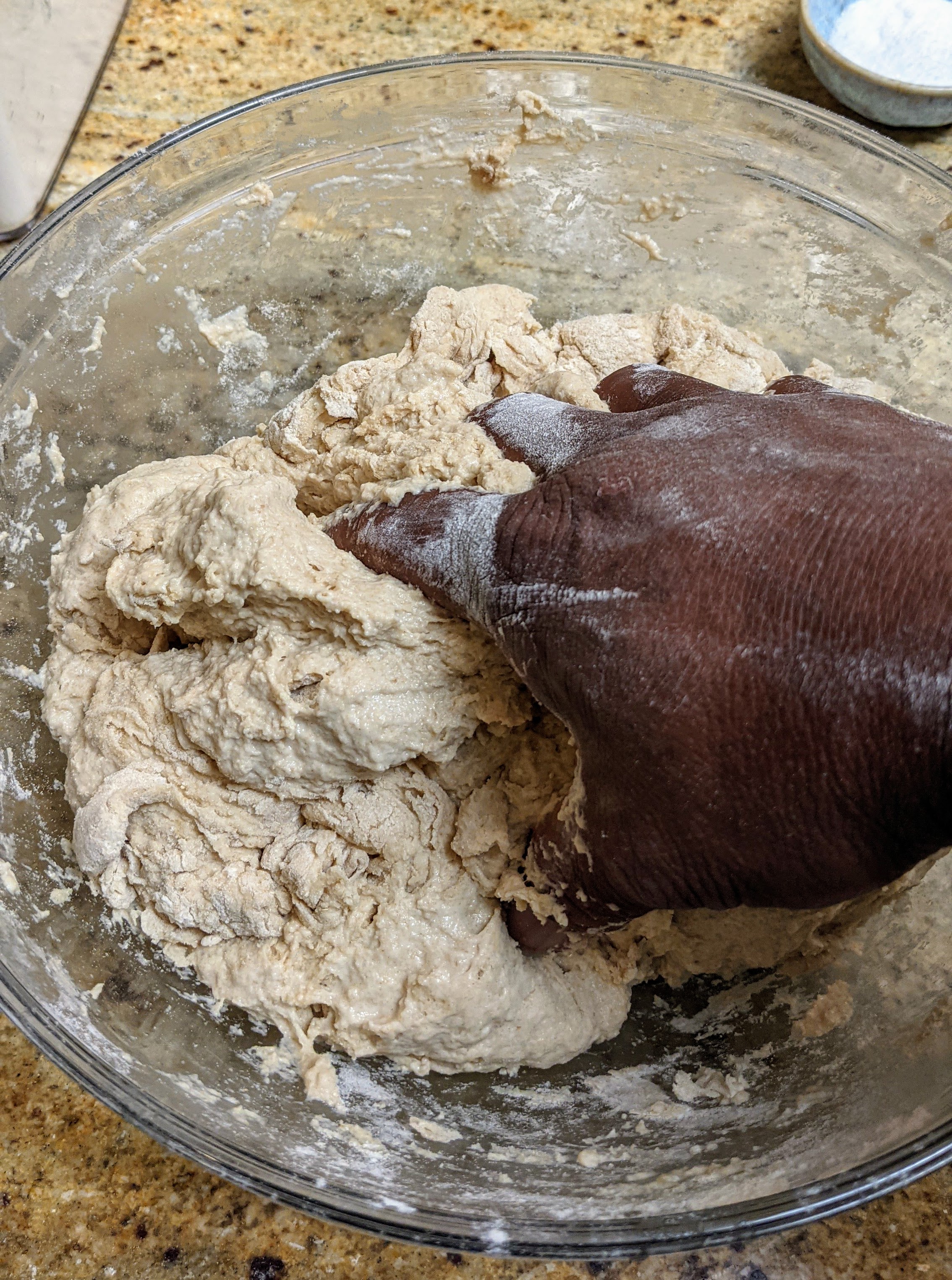 Once I had everything mixed, I dialed in the consistency of the dough by mixing by hand, adding a little extra flour and liquid as I didn’t feel I had enough dough. Mixing by hand at this point was important because it allowed me to really feel the dough.