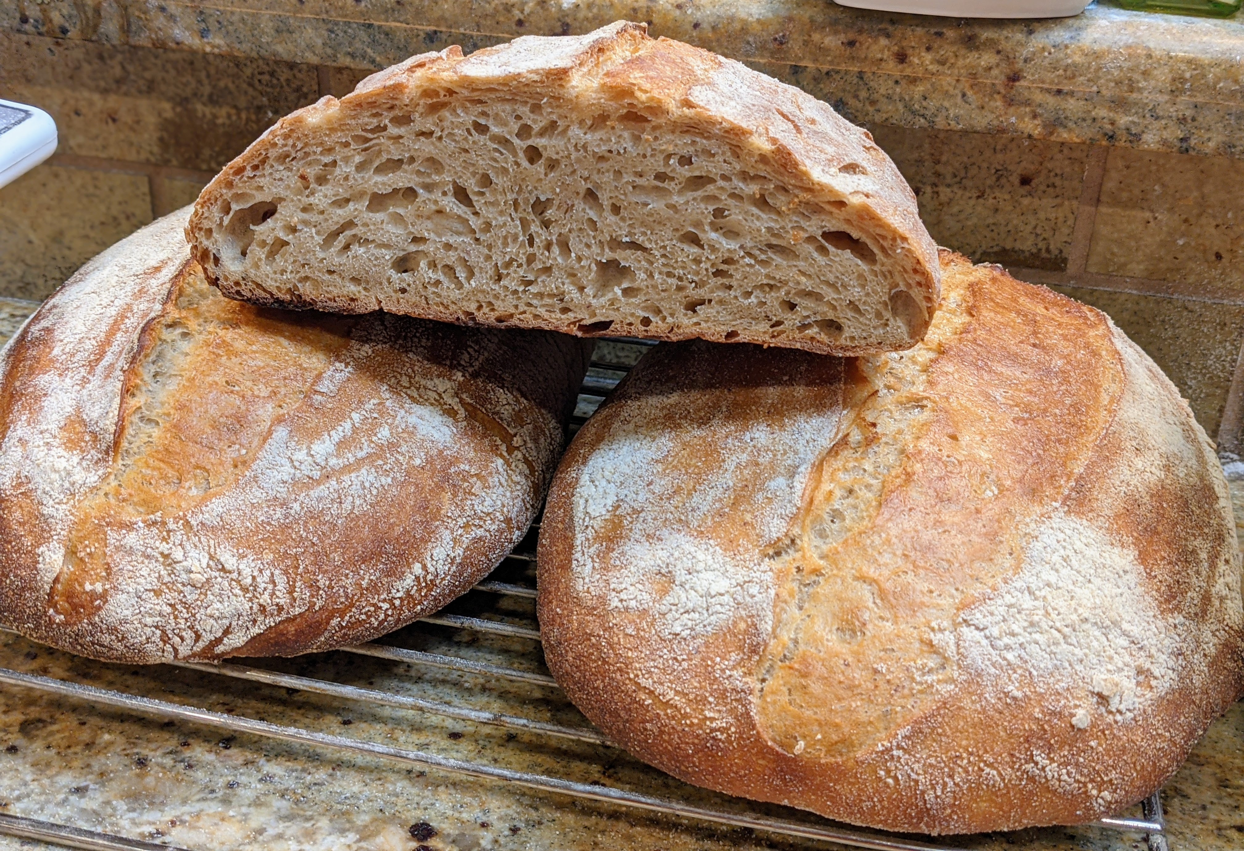 One might argue that a bread like this will not be as complex in taste as a traditional sourdough bread. But I disagree. Just as with cooking, complexity can come from several sources. I’ve joined the school of thought that doesn’t depend solely on the microbes to provide the flavor complexity. The combination of the flours I use plays an immense role in influencing the flavor and texture of the bread.