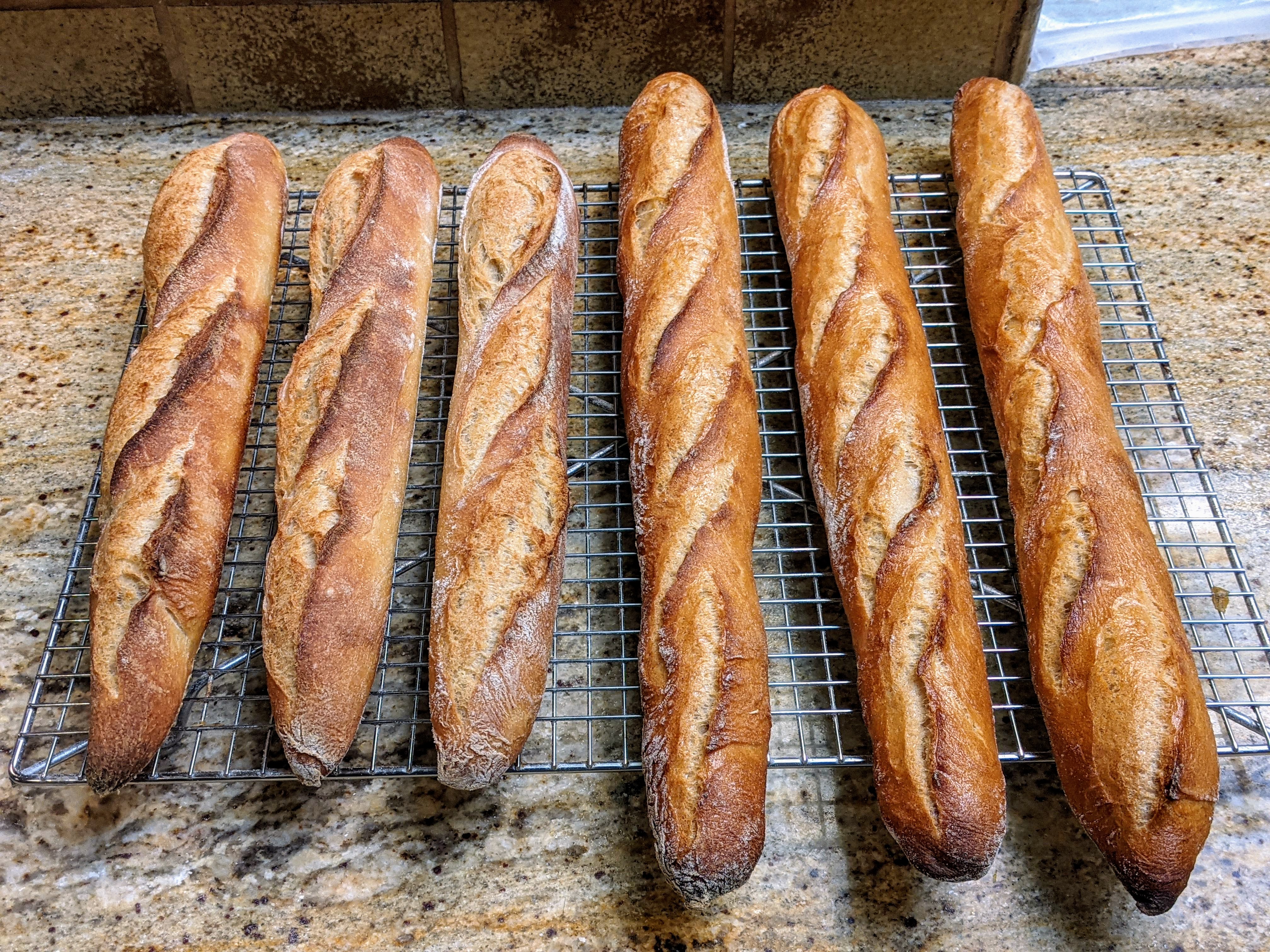 Whether I made baguettes or batards, the oven spring of the loaves has been outstanding! I was particularly impressed with the crumb of the baguettes I made because I thought I over-proofed them, but the yeasts kicked in once I put the loaves in the oven, and they sprung up nicely!